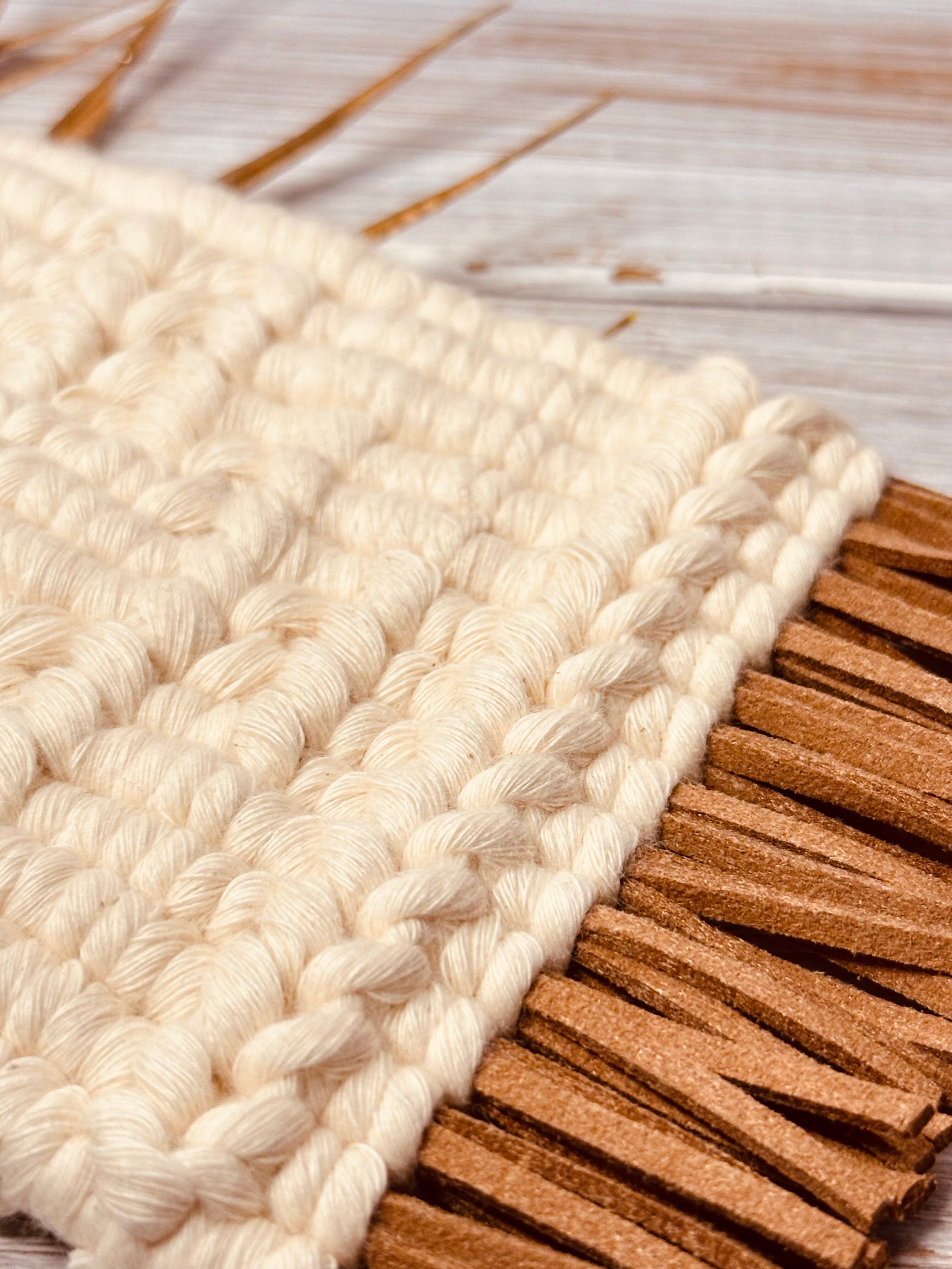 そんな特別感を持たせた、スエードをあしらったマクラメマットです。