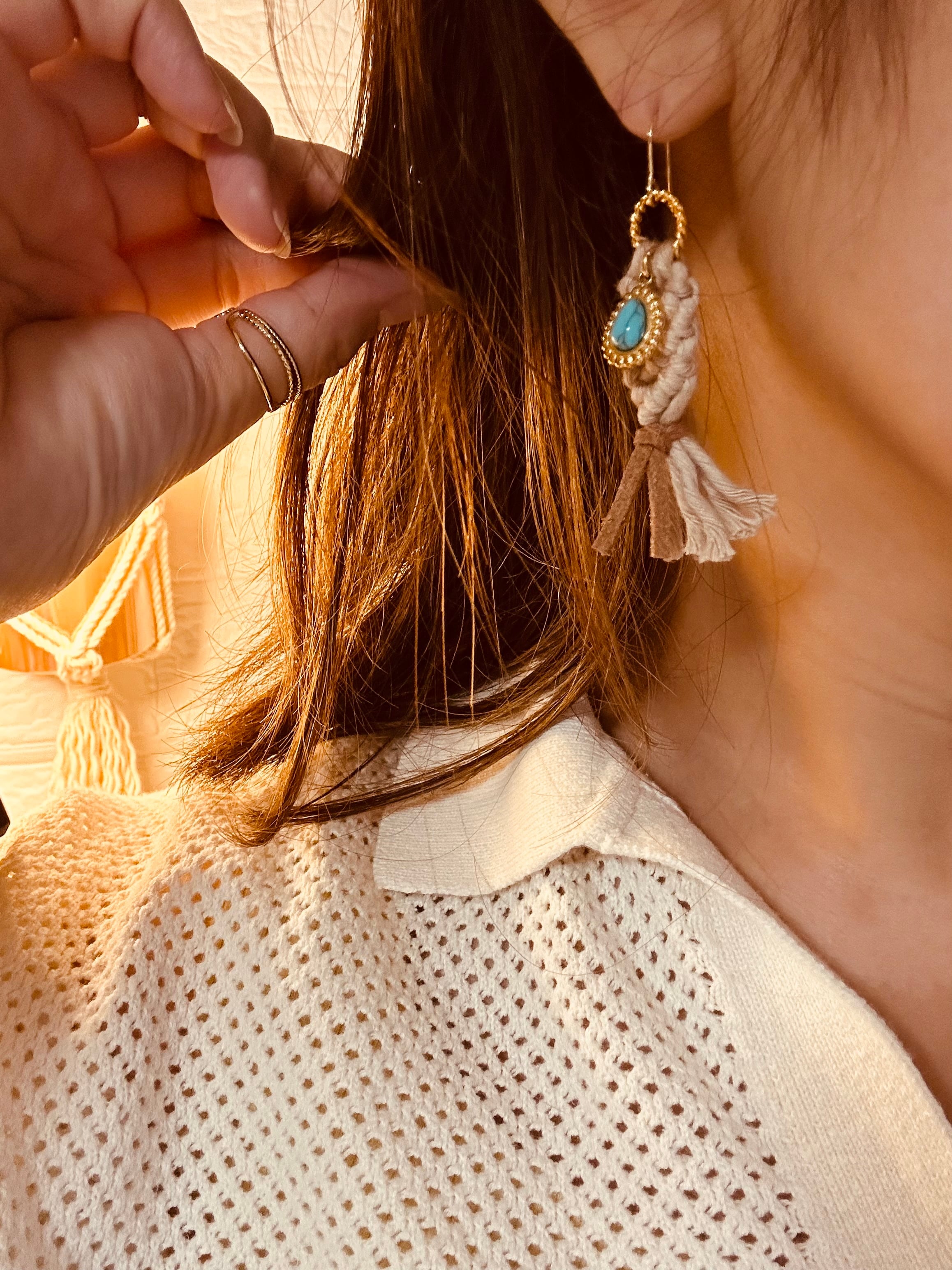 ナチュラルボヘミアンなマクラメピアス